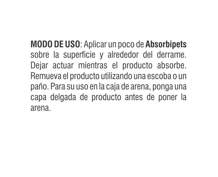 Indicado para orina, vómito, diarrea o cualquier derrame en casa.