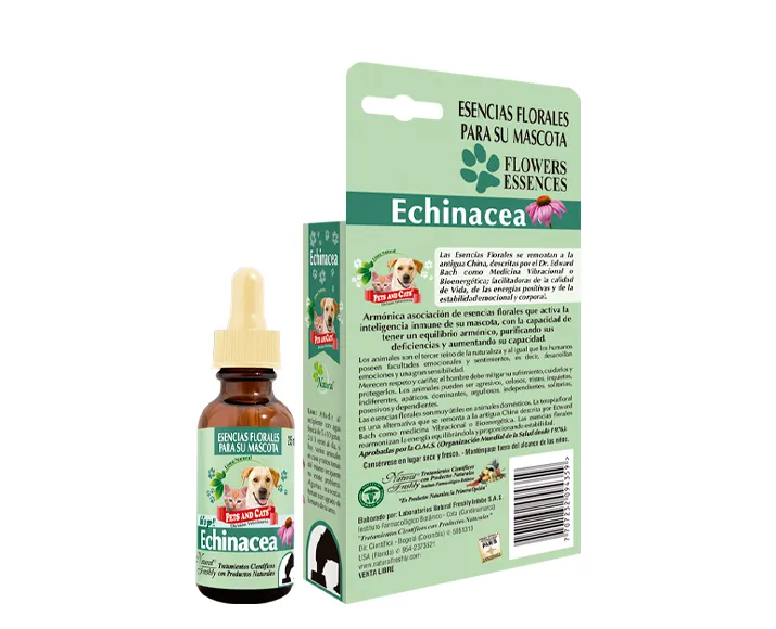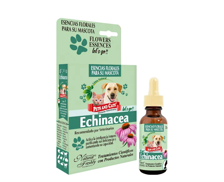 Esencias naturales para gatos P & C Esencia Equinácea Let’s Go, frasco de 25 ml. Cuida a tu gato con la línea de productos Pets and Cats, diseñados para mejorar su salud, comportamiento y bienestar de forma natural.