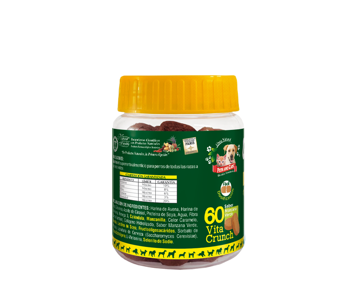 Producto natural para la salud y bienestar de tu perro: P & C Gastrimin, 60 Vitacrunch. Cuida a tu perro con la línea de productos Pets and Cats, diseñados para mejorar su salud, comportamiento y bienestar de forma natural. Fin a la gastritis con gastrimin.