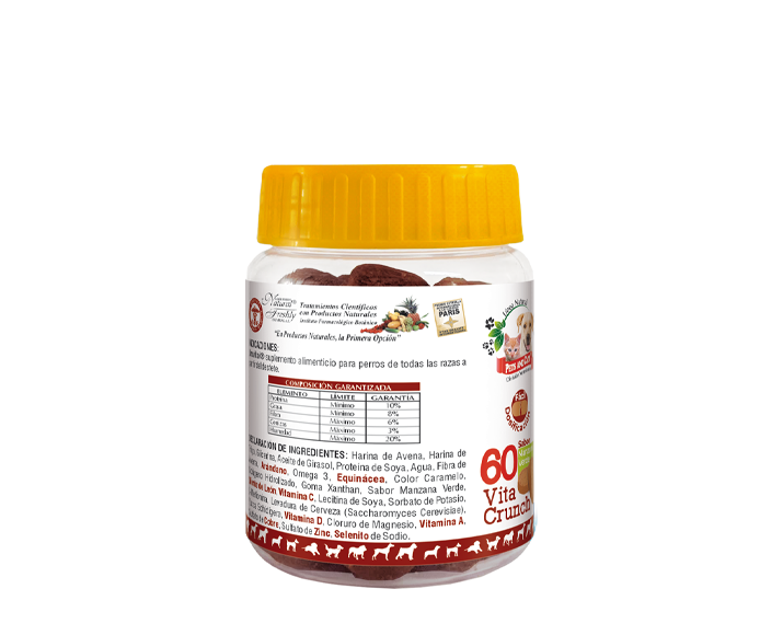 Producto natural para la salud y bienestar de tu perro: P & C Urovital, 60 Vitacrunch. Cuida a tu perro con la línea de productos Pets and Cats, diseñados para mejorar su salud, comportamiento y bienestar de forma natural. Mantiene el buen funcionamiento del sistema urinario.